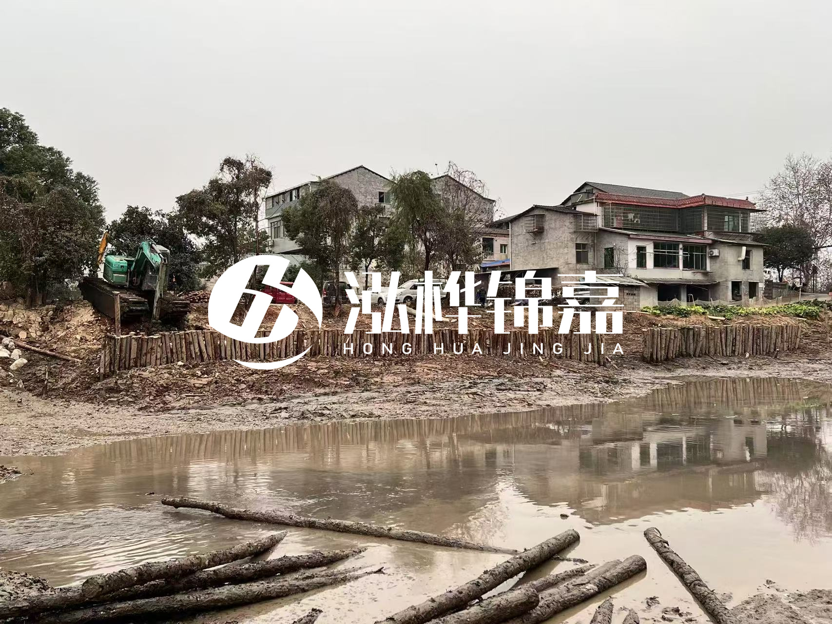 - 畢節市挖機打木樁專業施工-河道護坡木樁會不會腐爛?